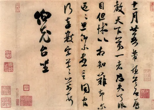 芾顿首启。经宿。尊候冲胜山。试纳文府。且看芭山暂给一视其背,即定交也。少顷勿复言。芾顿。彦和国士。本欲来日送。月明,遂今夕送耳。