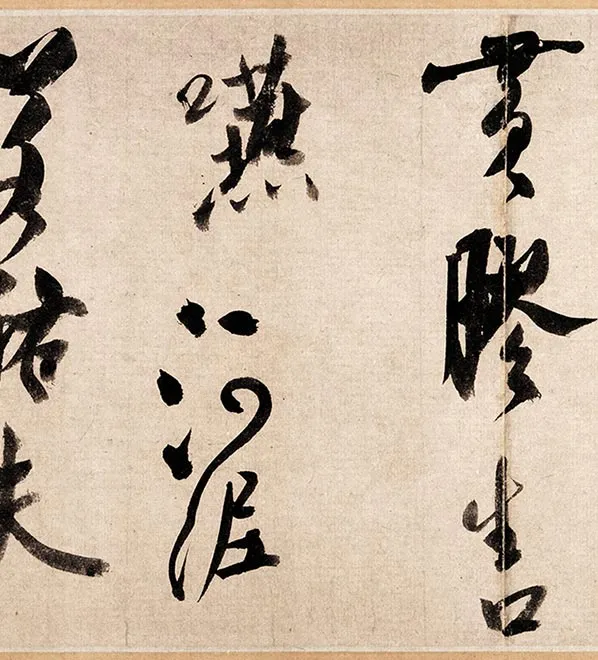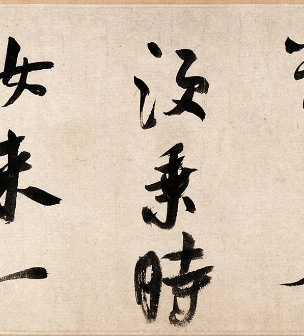 米芾《吴江舟中诗卷》,纸本,全卷31.3×559.8cm,原为美国纽约大都会博物馆约翰·克劳弗德藏,现寄赠与梅多鲍利坦美术馆。此帖是在吴江舟中,为朱邦彦所书,是一首五言古诗,凡44行,为米芾晚年力作,既有中年书风的痛快淋漓,又有晚年老道的清古从容,枯笔疏行,欹侧随意。