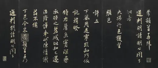 黻頓首再拜。後進邂逅長者于此。數廁坐末。欵聞議論。下情慰慰抃抃。屬以登舟即徑出關。以避交遊出餞。遂莫遑祗造舟次。其為瞻慕。曷勝下情。謹附便奉啓不宣。黻頓首再拜知府大夫丈棨下。
