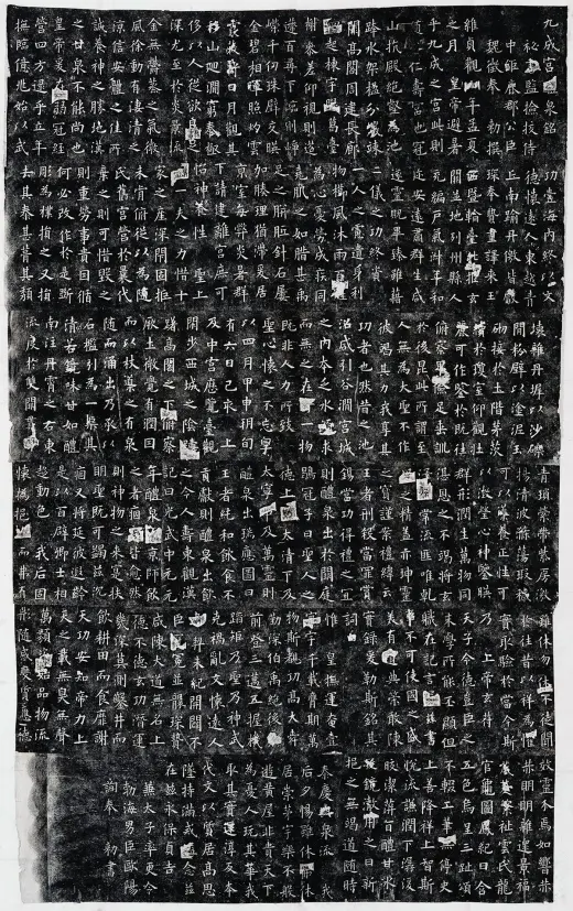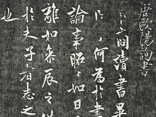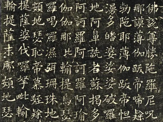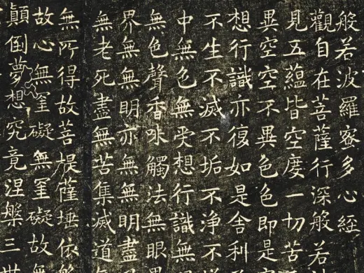 般若波羅密多心經。觀自在菩薩。行深般若波羅密多時。照見五蘊皆空。度一切苦厄。舍利子。色不異空。空不異色。色即是空。空即是色。受想行識。亦復如是。舍利子。是諸法空相。不生不滅。不垢不淨。不增不滅。是故空中無色。無受想行識。無眼耳鼻舌身意。無色聲香味觸法。無眼界。乃至無意識界。無無明亦無無明盡。乃至無老死亦無老死盡。無苦集滅道。無智亦無得。以無所得故。菩提薩埵。依般若波羅蜜多故。心無罣礙。無罣礙故。無有恐怖遠離顛倒夢想。究竟涅槃。三世諸佛。依般若波羅蜜多故。得阿耨多羅三藐三菩提。故知般若波蜜多是大神呪。是大明呪。是無上呪。是無等等呪。能除一切苦。真實不虛。故說般若波羅蜜多呪。即說呪曰。揭帝揭帝波羅揭帝。波羅僧揭帝菩提薩婆訶。般若波羅蜜多心經。貞觀九年(六三五年)十月旦日。率更令歐陽詢書于白鹿寺。