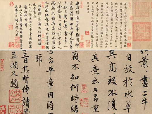 这是管道昇(赵孟頫之妻)给婶婶的问安、馈赠的家信,实为赵孟頫所书。其笔力扎实,体态修长,秀媚圆活,畅朗劲健。赵氏信笔写来一时忘情,末款署了自己的名,发觉后忙又改过,现在还可以看出涂改之迹。这样的细节,足见夫妻情深。
