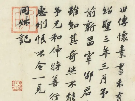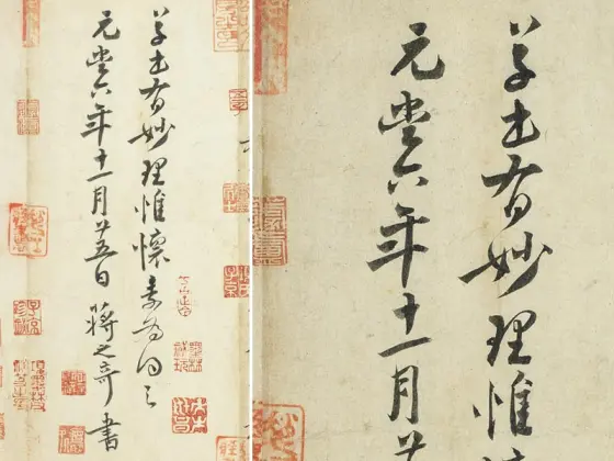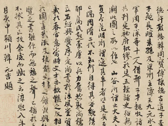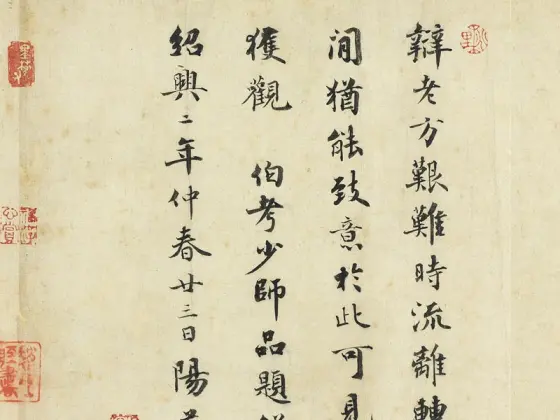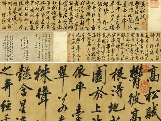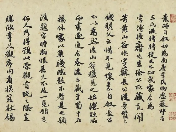 ——清代大臣、诗人、学者“沈德潜”在传宋张择端作《清明易简图》的拖尾行书书法题跋。