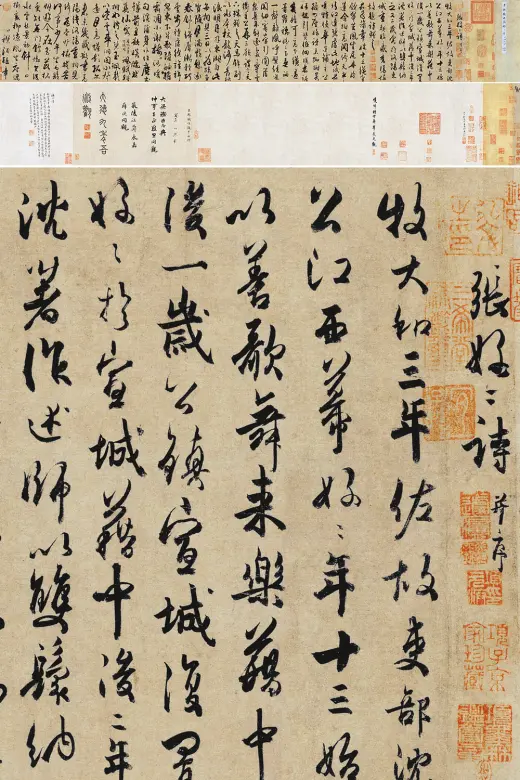 清代大臣、诗人、学者“沈德潜”在传宋张择端作《清明易简图》的拖尾行书书法题跋。