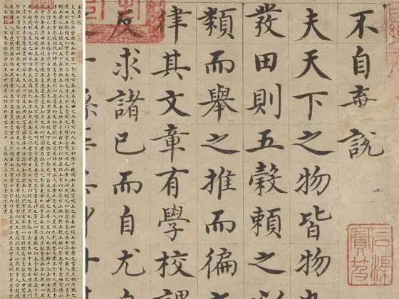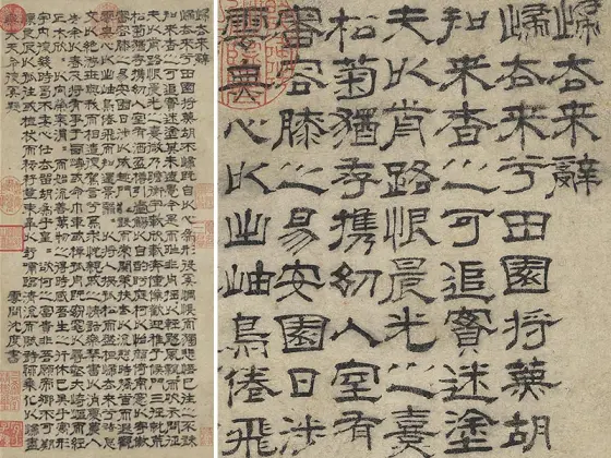 明沈度書。(楷書)。(第一則)書奉鏞翁大參鄉兄閣下。沈度固完。(第二則)前者恪來具領雅意。向索真字。今寫西銘一通。座右銘一通奉去。殊愧陋劣。冀見敎。復次人便。得惠孔廟梁鵠隸碑一二紙。墨色精明。幸甚。良晤未期。伏惟心照。不具。十二月廿四日友生度奉鏞翁大參鄉兄閣下。(行草書)。