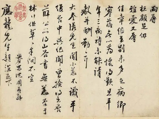 登金山。 龙宫涌出玉璘珣,乍眼来看极悚神。 满地莫论无坐处,东坡至佛印室中曰: 「内翰来此间无坐处。」 中流真见不羁人。东坡蒜山诗云: 「金山亦是不羁人。」 墙低树少多容月,石瘦花悭晏得春。 舟楫一江名利路,烟波谁谓不生尘。 陶公甫韦大年费崇父道士何可闲同酌吉公房一首。 常惜忙未到,到来方悟闲。 过江如隔世,入寺不知山。 风气薄诗骨,夕阳浮醉颜。 古人夸一宿,三宿我才还。 吉公永安堂夜宿一首。 清酣散江风,展火对不寐。 澄怀入禅观,真若超世谛。 自顾衰飒境,挂住亦良计。 江山不厌客,诗壁无旷地。 州人亦何修,舟楫日容易。 笑我雪鸿迹,天地暂为寓。 感史明古曾约同游今已化去一首。 胡翁久忆金焦胜,感慨来登独老身。 生死隔尘空旧约,江山如此欠斯人。 强留诗酒聊三日,愁送莺花又一春。 浩荡烟波莽回首,漫将行乐与谁论。 赵民部涵虗楼小酌有作。 白发萧萧始此来,高楼正倚夕阳台。 阑凭南面山都出,梯到上头江大开。 自愧衰翁落迟局,未容民部不深杯。 若教却饮天应笑,豪杰眼前安在哉。 民部约游焦山归思浩然作此奉辞。 江势方长海又开,倩人扶上妙高台。 十年强健天如许,留取焦山作后来。 民部索和西涯阁老旧韵。 尽有风波怯往还,又因名胜使人攀。 天将白玉浮诸水,谁以黄金姓此山。 欲就一竿渔浩荡,更凭双足弄潺湲。 老僧莫作谁何问,只借中泠洗醉颜。 登妙高台。 登台见青草,(月永)(月永)感今昔。 江山本旧观,形胜我新识。 江山不因台,流峙自天辟。 台固为江山,亦当为游客。 往来其无穷,有得有不得。 坡老莫可呼,举酒酹江色。 望江。 一源万里势成三,截地分明限北南。 长堑悠悠天所设,奔流浩浩海相函。 独怜击楫存遗誓,可咲囊沙是谩谈。 头白妙高方纵目,落霞孤鹜晚犹贪。 饮中泠泉。 此山有此泉,他山无此泉。 泉名与山名,并为天下传。 山泉两合德,珠璧辉江天。 宛在水中央,天使尘土县。 山本一江石,泉井从石穿。 非鬼不可凿,人莫知其源。 黝深贯龙窟,不溢亦不骞。 我久负渴心,始修一啜缘。 凭阑引小勺,冰雪流荒咽。 再灌肝与肺,化作清泠渊。 沁沁若沆瀣,逐逐空腥膻。 至味谢茗荈,亦不从烹煎。 谬哉康王谷,欲胜宜未然。 未伺鸿渐知,但饮必推先。 由我口舌得,亦获参其玄。 世多未沾者,茫茫尚垂涎。 满注两大罂,载归下江船。 摇光荡江月,泛影云亦鲜。 分润及乡人,七椀同通仙。 郭璞墓。 气散风冲岂可居,先生埋骨理何如。 日中数莫逃兵解,世上人犹信葬书。 漂石龙涎春雾后,交沙鸟迹晚潮馀。 秪怜玉立三峰好,浮弄江心月色虚。 鹘石。 海东飞鹘力不续,就此一拳聊息足。 擎波劳怪鬼莫撼,引手近疑人可触。 山含岈水窦候潮鸣,皴皵云肤借苔绿。 金山只恐顺江去,谁插鳌簪关地轴。 千年奇观岂无赏,疑有坡诗刻苍玉。 顷年游金山,次第得诗数篇,儗托吉公呈州中诸名流,未果。□光甫来顾,出秋山□作见示,叹服不已。遂乘便附光甫转似□山,可窜与窜,可□和之,是所望也。光□博雅好学,于好丑自了了目中,但不屑见教耳。弘治癸亥(一五0三年)上巳日,长洲沈周。