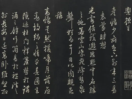 收传印记:龙溪林氏(重一)、定静堂印、宗毅私印(重一)、志超鉴赏、定静堂收藏印、恭亲王章、乐道堂、收付、定静堂(方印)、许国、书印、定静堂(长方)、定静堂(重二。圆腰)、志超珍赏(重一)、宗毅翰墨(重一)、志超墨缘、吉祥居(重二)、志超审定(重二)、我爱吾卢、同心之言、来青阁(重一)、定静堂印、庄敬日疆、宗毅长寿、美意延年、宗毅私印、林宗毅印、林诚道印、朱氏印章、定静堂印(重一。四灵印)、台员林氏定静堂所藏书画、廉夫、汲古书屋、正谊书屋珍藏图书、志超鉴赏、定静、东吴生、此外何求、林宗毅印(重一)、愿作贞松千岁古、罗振玉印、弘文之印、时甫小孙(重一)、困学斋、定静堂印、志超审定。