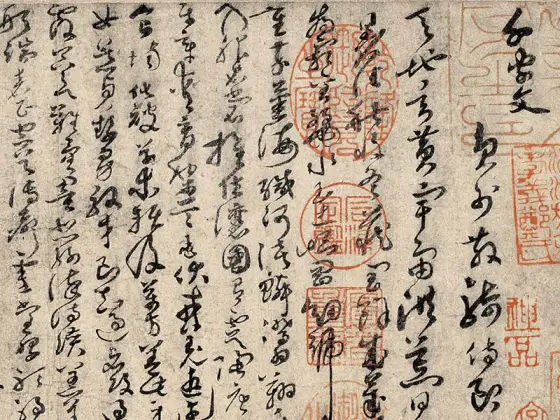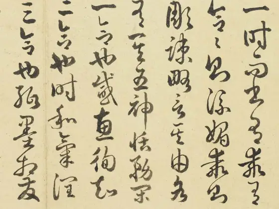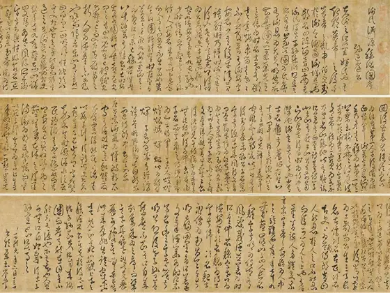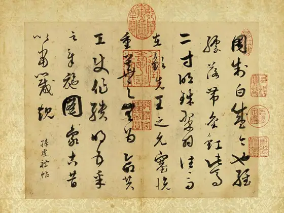 唐孙过庭书。惟圣皇之御历,乃承天而则大。洽至道于区中,被仁风于海外。通凤穴以文轨,袭龙庭以冠带。舍夷言于蒿街,陈万物于王会。渺渺地角,悠悠嶂表。有绝域之神兽,因重译而来扰。其所居也,岩磴深阻,盘纡绝峻。翠岭万重,琼崖千仞。马顿辔而莫外,车摧轮而不进。聚方服之君长,召积风而奉进。尔乃发乌弋,过白狼,逾绝巘,跨飞梁。越流沙而遥集,超积石而高骧。其为状也,则筋骨纠缠,殊姿异制。阔臆修尾,劲毫柔毳。钩爪锯牙,藏锋蓄锐。弭耳宛足,伺闲借势。暨乎奋鬛舐唇,倏来忽往。瞋目电曜,发声雷响。拉虎吞貔,裂犀分象。碎遒兕于龈腭,屈巴蛇于指掌。践藉则林麓摧残,哮吼则江河振荡。是以名将假其容,高人图其质。罄其威以凌厉,美其风而赞述。鉴倚伏以荣身,乃有识之高轨。彼白猿之骋妙,终取毙于弧矢。虽元豹之幽栖,亦捐躯于岩趾。并同亡而异术,岂行藏之足纪。何兹兽之明智,独出处以殊伦。虽奋武以驯挚,乃知机而屈伸。去金方之僻远,仰元风之至淳。服猜心与猛气,遂感德以依仁。同百兽之率舞,共六扰而来驯。斯则物无定性,从化如神。譬鳞羽变质于淮海,金锡成器于陶钧。当是时也,兆庶欣瞻,百僚嘉叹。悦声教之遐宣,属光华之在旦。臣载笔以叨幸,得寓目于奇玩。顺文德以呈祥,乃编之于东观。
