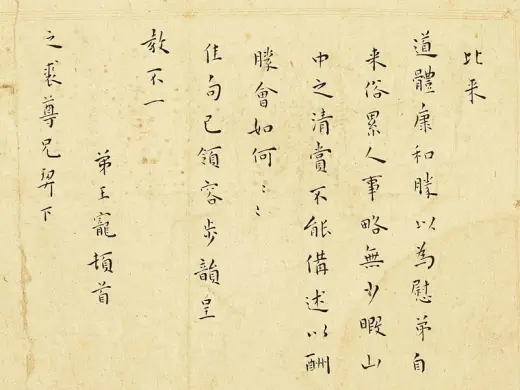 畫扇即乞付來人,就煩印章詩句俱要完成。感感。令尊許分惠茶葉,此必出君手。望大恢宏量,平生人品,全在這遭上見,不要小器耳。寵再拜。休承先生。