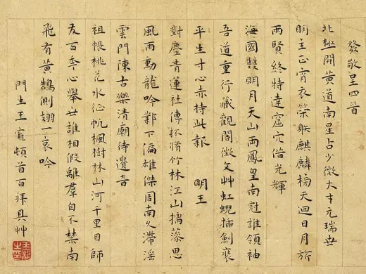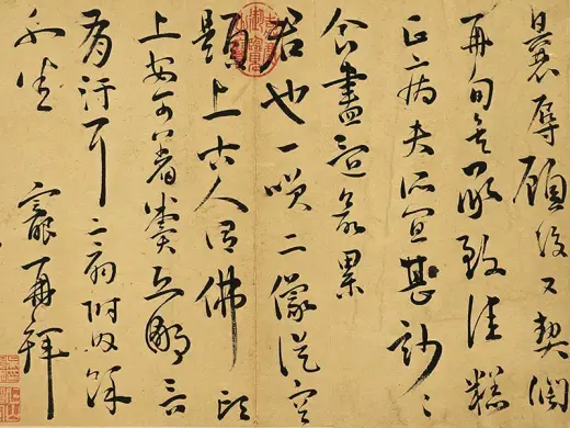 画扇即乞付来人,就烦印章诗句俱要完成。感感。令尊许分惠茶叶,此必出君手。望大恢宏量,平生人品,全在这遭上见,不要小器耳。宠再拜。休承先生。