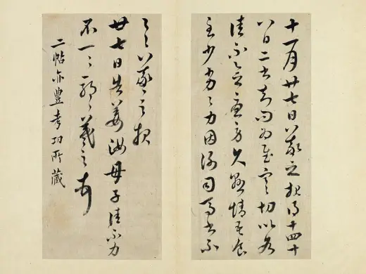 (第一则)十一月廿七日羲之报。得十四十八日二书。知问为慰。寒切。比各佳不。念忧劳久悬情。吾食至少。劣劣。力因谢司马书。不一一。羲之报。(第二则)廿七日告姜汝母子佳不。力不一一耶。羲之顿首。(草书)。二帖亦丰考功所藏。(楷书)。
