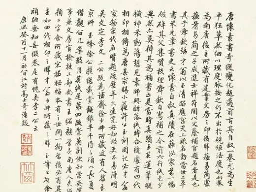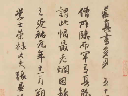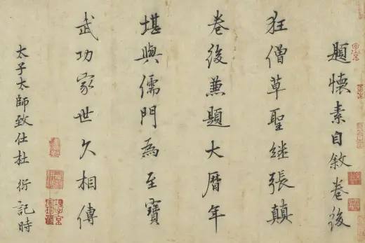 本紀弟四五,定本淨本並分付,弟六已下,如未取得,速取之,恐妨點對。來日局中相見也。脩拜白,脫錯多,將定本卷子細對,淨本候來日商量寫。(自識)此五行臨真蹟。