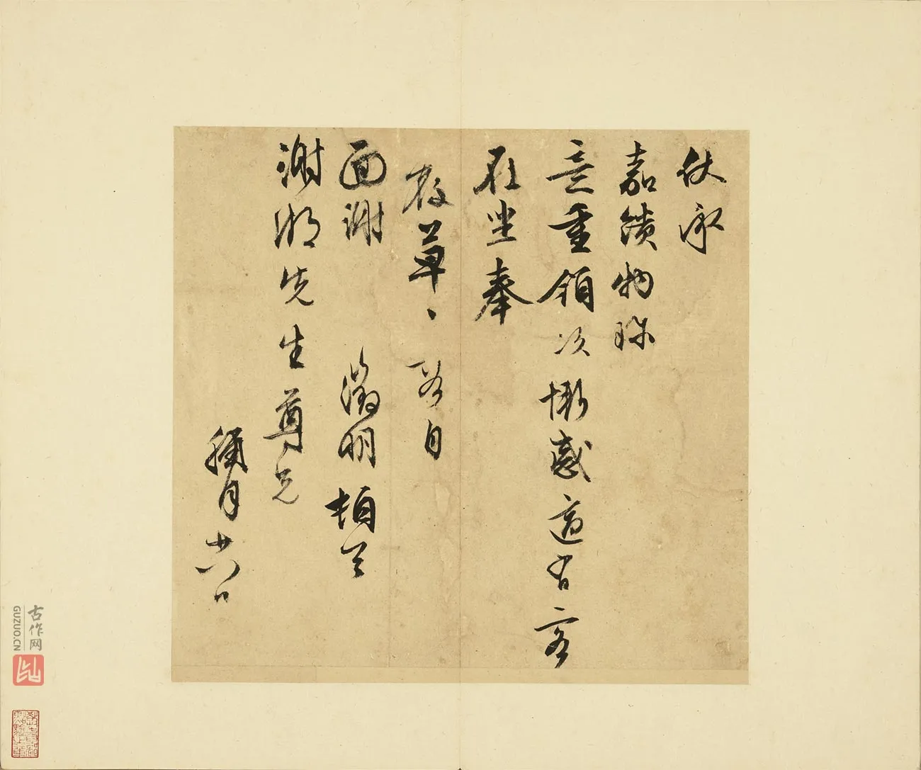 简体释文:阔别耿耿。示观新刻甚佳。伺卒业更当请教。使还。且此奉复。徵明顿首。谢湖先生至孝。