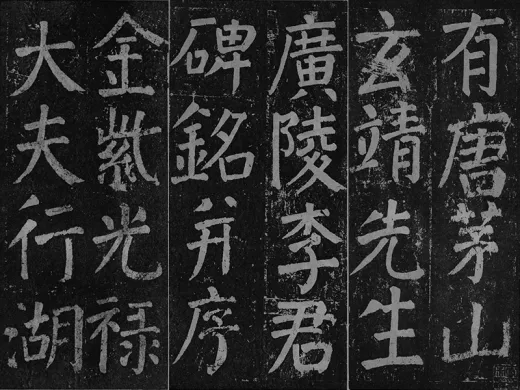 ——《李玄靖碑》,全称为《有唐茅山玄靖先生广陵李君碑铭并序》。碑于大历十二年(777)立在江苏句容县茅山玉晨观,南宋绍兴七年(1137)断裂,明代嘉靖三年(1524)遭火石碎。