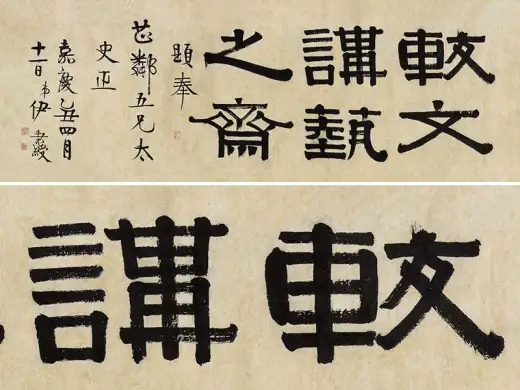 清,伊秉绶,隶书较文讲艺之斋镜心,纸本,47x147 厘米。