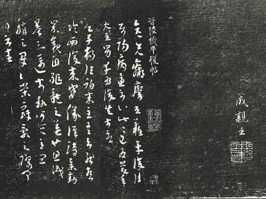 清成亲王刊刻话雨楼法书帖墨拓本,永瑆临晋陆机平复帖,爱新觉罗永瑆,草书,墨拓,台北故宫博物院藏。