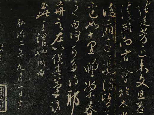 张廷芳近来文思益浩荡清雄。向者会于太常之后厢。连酒必诗。皆令人歆艳不已。如十里野棠春雨香之句。何可多得耶。虚此册之左。以俟其笔。谚云抛砖引玉。此之谓也。弼白。弘治二年(一四八九年)九月一日书。