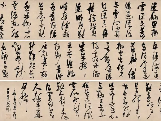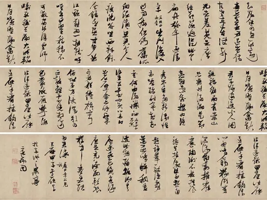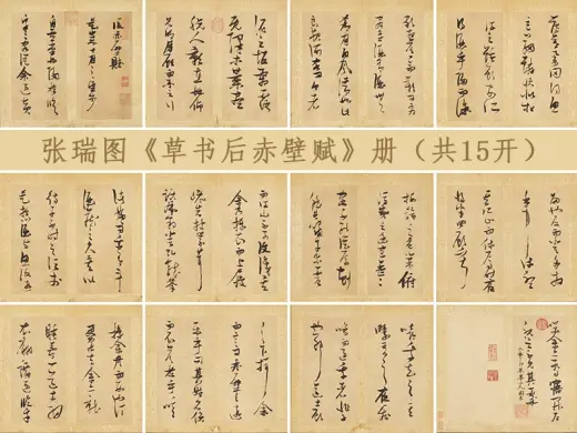 张瑞图《草书后赤壁赋》册,纸本,本幅28.9厘米×19.1厘米,共8开16幅,天启六年(1626) 书,大都会艺术博物馆藏。