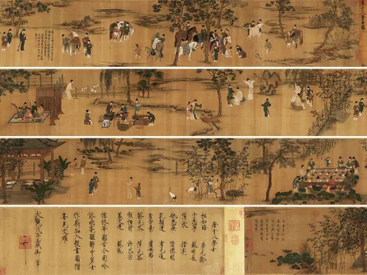 古人之画六法具备,穷神尽妙与化权同其宰运。后世则局于一隅,各自成名家尔。此册王侯将相隐逸名流,黄冠缁素无不该揽。而皆极其选汇集大成,且方域之内名山列峙。观之可以尚友千古,卧游六合矣。非若汉明之鸿都学,隋文之宝迹台。徒事夸诞为也,时宣和五年春三月重识。