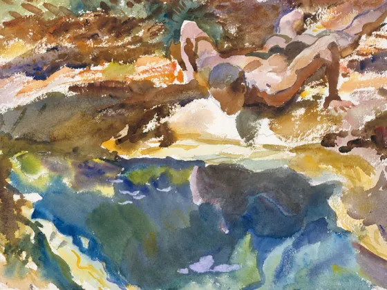 1917 年,萨金特在佛罗里达州迈阿密拜访了他的朋友查尔斯·迪林 (Charles Deering) 和詹姆斯·迪林 (James Deering) 兄弟。詹姆斯精心设计的意大利式别墅比斯开(Vizcaya)当时正在建设中,令萨金特着迷。他以建造花园的肌肉发达的工人为模特,创作了一系列令人眼花缭乱的水彩画。他最喜欢把阳光和水主题结合起来。