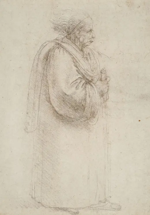 这幅画可以追溯到列奥纳多生命的最后几年。我们知道,此时列奥纳多本人已经蓄满了胡须,一个胡须老人画一个胡须老人不可能忽视自画像的元素。事实上,卢卡斯·沃斯特曼 (Lucas Vorsterman) 在 1620 年代绘制的这幅画的副本,在本张到达英国后不久就被刻为达芬奇肖像,反映了达芬奇的普遍观念(当时完全确立)作为一个神秘的先知。
