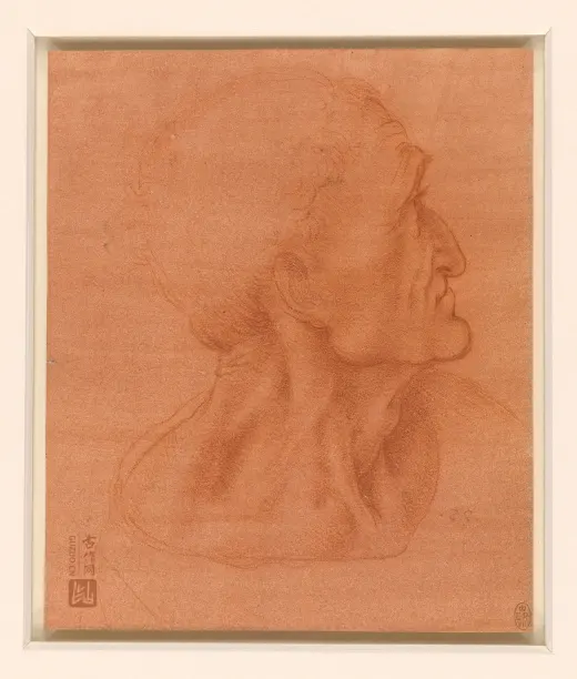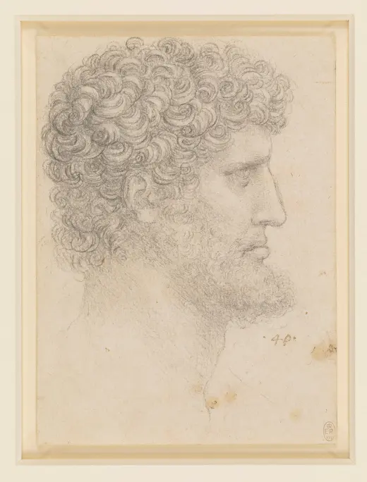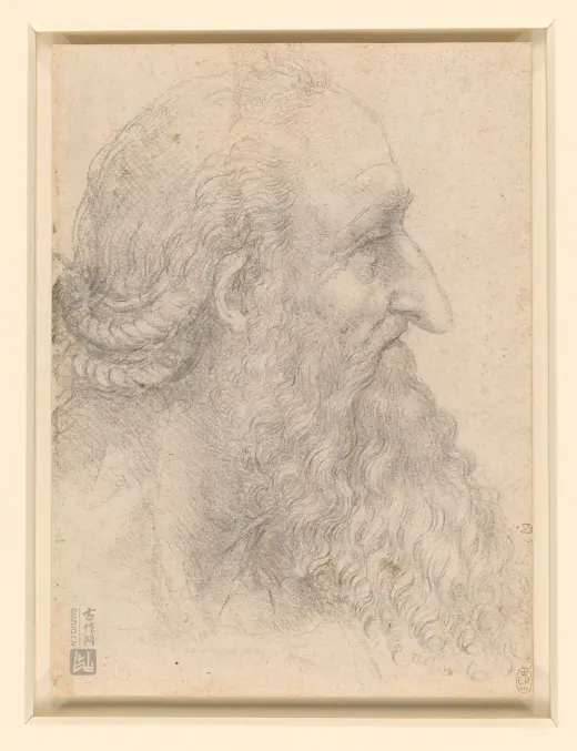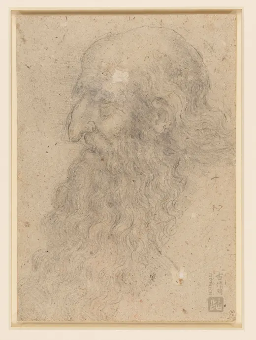 The head of an old bearded man,约1517-1518年,黑色粉笔、纸, 21.3 x 15.5 厘米,达·芬奇(Leonardo da Vinci),英国皇家收藏基金会藏。
