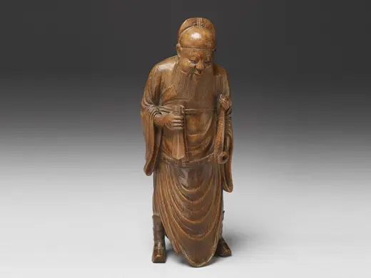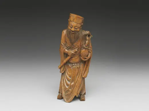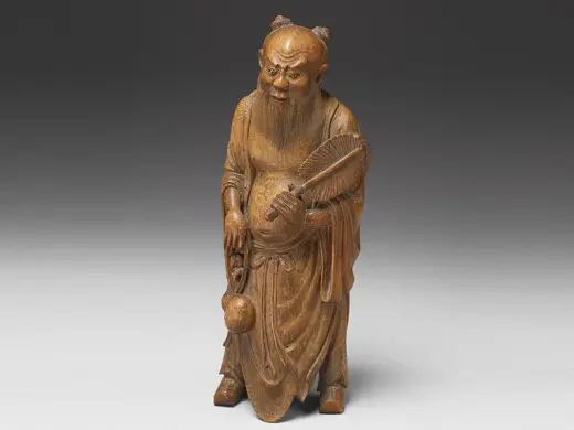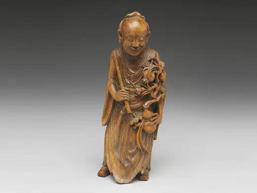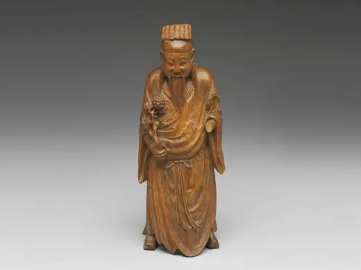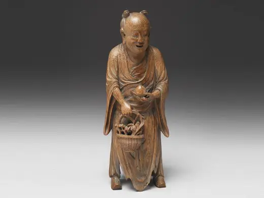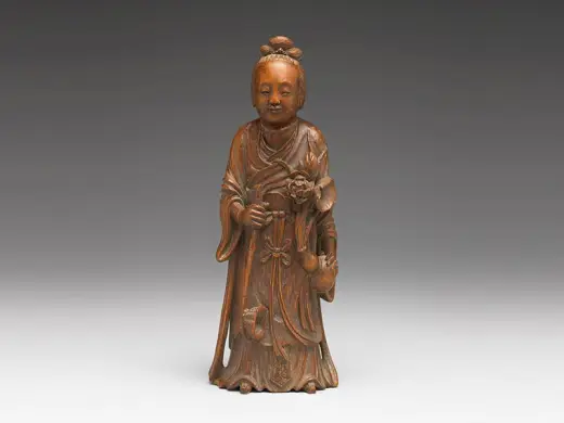 竹雕八仙(何仙姑),雕刻,清,1644-1911年,底座长8.0公分、宽5.2公分、高21.0公分,台北故宫博物院藏。