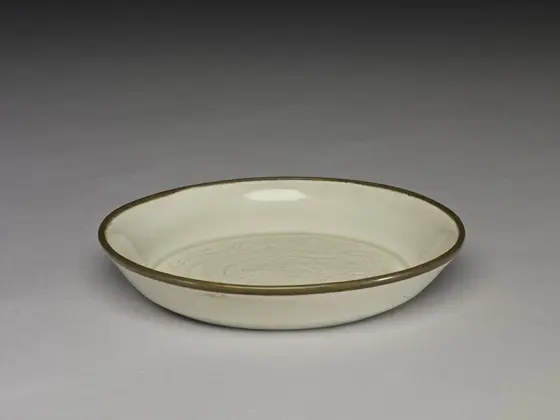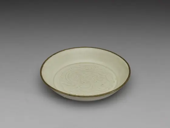 宋代“定窑白瓷划花螭纹碟”陶瓷器