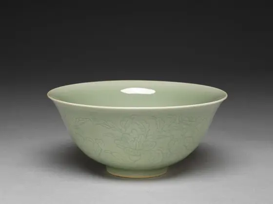 明代“青瓷划花牡丹纹碗”陶瓷器