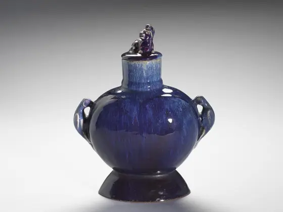 清代“钧釉兽耳弦纹壶”陶瓷器