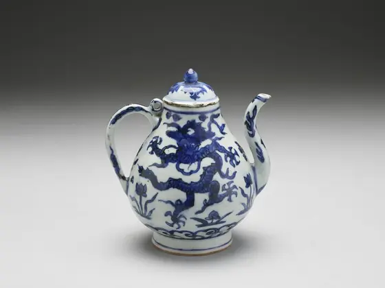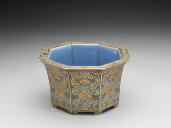 “石湾窑天蓝釉蟠桃水盛”陶瓷器