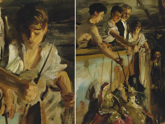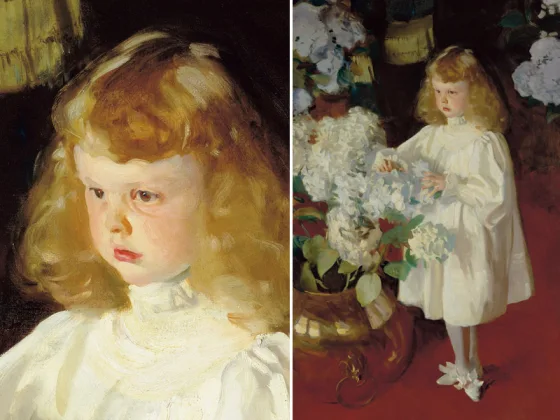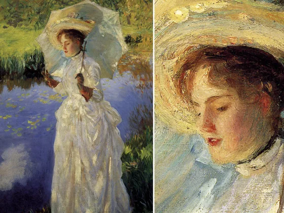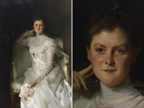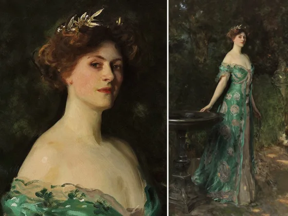艾萨克·牛顿·菲尔普斯·斯托克斯(1867年-1944年)于1895年与同样来自纽约的伊迪丝·明特恩(1867年-1937年)结婚。这对夫妇的一位朋友在婚礼礼物中委托了著名的侨居画家约翰·辛格·萨金特为年轻的新娘画一幅肖像。最初,艺术家选择了一套晚礼服进行绘画,但很快决定将伊迪丝·明特恩·斯托克斯描绘成运动风格的日常服装。该作品被视为萨金特最重要的双人肖像画之一。