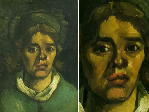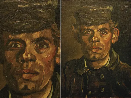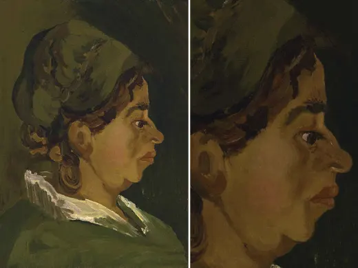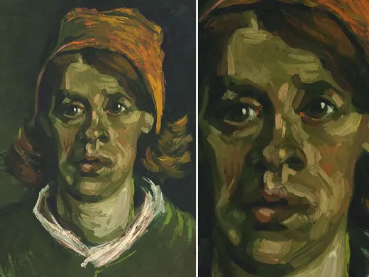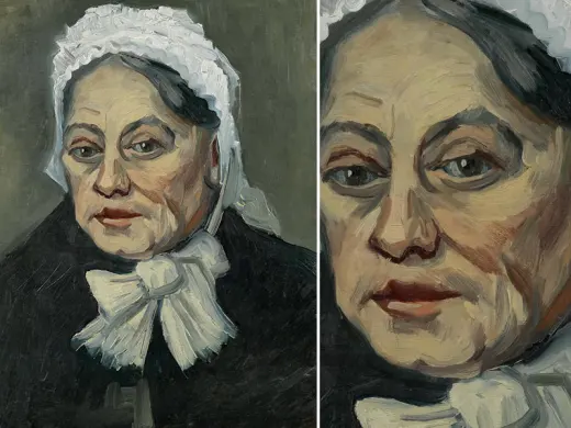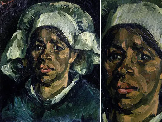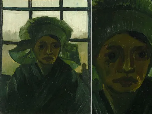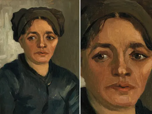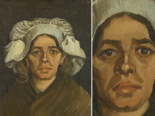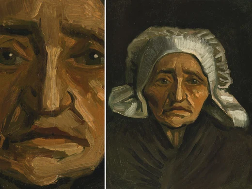 In the winter of 1884-1885, Van Gogh made a large series of paintings in Nuenen (NL): studies of farm workers' heads. Peasant women in Brabant really did wear white headdresses in those days. These intrigued Van Gogh because of the contrast with their faces, which remained partly in shadow. 'The heads of these women here with the white caps — it’s difficult — but it’s so eternally beautiful',he wrote. At first glance, this woman's headdress looks white, but if you look more carefully you can see that Van Gogh used a variety of colours.