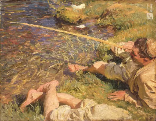这幅画中的人物,萨瑟兰公爵夫人(Duchess of Sutherland),是当时伦敦社会最著名和最进步的成员之一。萨金特(Sargent)描绘了她在一个阴凉的花园里的动人身姿。她的一只手放在喷泉上,穿着一件低胸绿色碎花连衣裙。公爵夫人似乎是从自然中走出来,这激发了她红发上的月桂叶头饰。这幅不朽的作品的来源,从萨金特(Sargent)学习的过去的伟大大师,包括委拉斯凯兹(Velázquez)和凡·戴克(Van Dyck),延伸到18世纪的英国肖像画家。