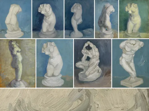Drying cracks are visible in many places. Look at the area immediately below the skull, for example. The paint has cracked because Van Gogh painted the skull over an earlier picture. He covered up the earlier image with a layer of zinc white – a kind of paint that dries extremely slowly. The drying out process continued after the skull had been painted over it, causing cracks to form in the top layer of paint.