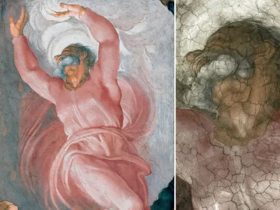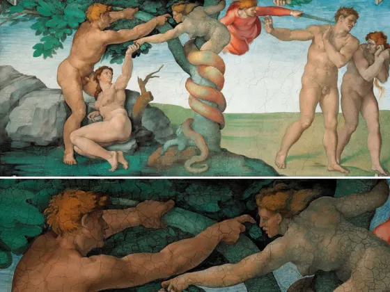 1596年教皇克莱孟八世索性想把这幅壁画全部毁掉,幸被罗马圣路卡美术学院的画家们劝阻住了。