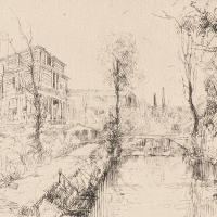 布鲁埃蚀刻版画《带桥与孩童的风景》