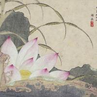 传五代南唐·顾德谦《步莲池水禽图》对轴