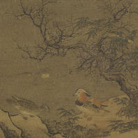 传南宋马麟花鸟画《雪岸鸳鸯图》轴