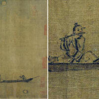 清·周鲲《仿许道宁澄湖泛月》山水画夜景页