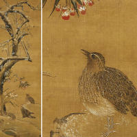 宋徽宗赵佶花鸟画《蜡梅山禽图》轴
