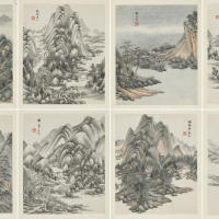 清王鉴《仿黄公望溪亭山色图》扇面页
